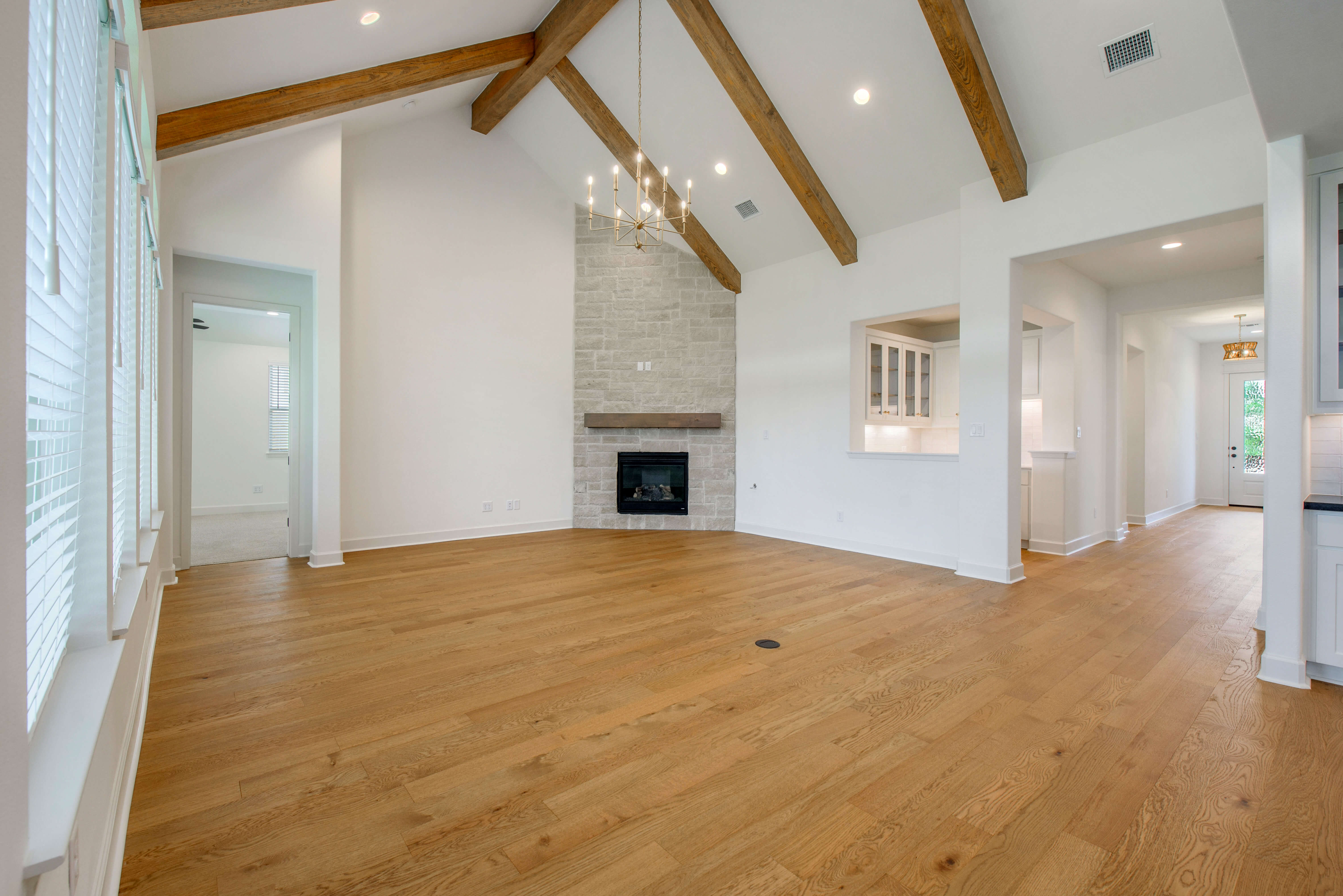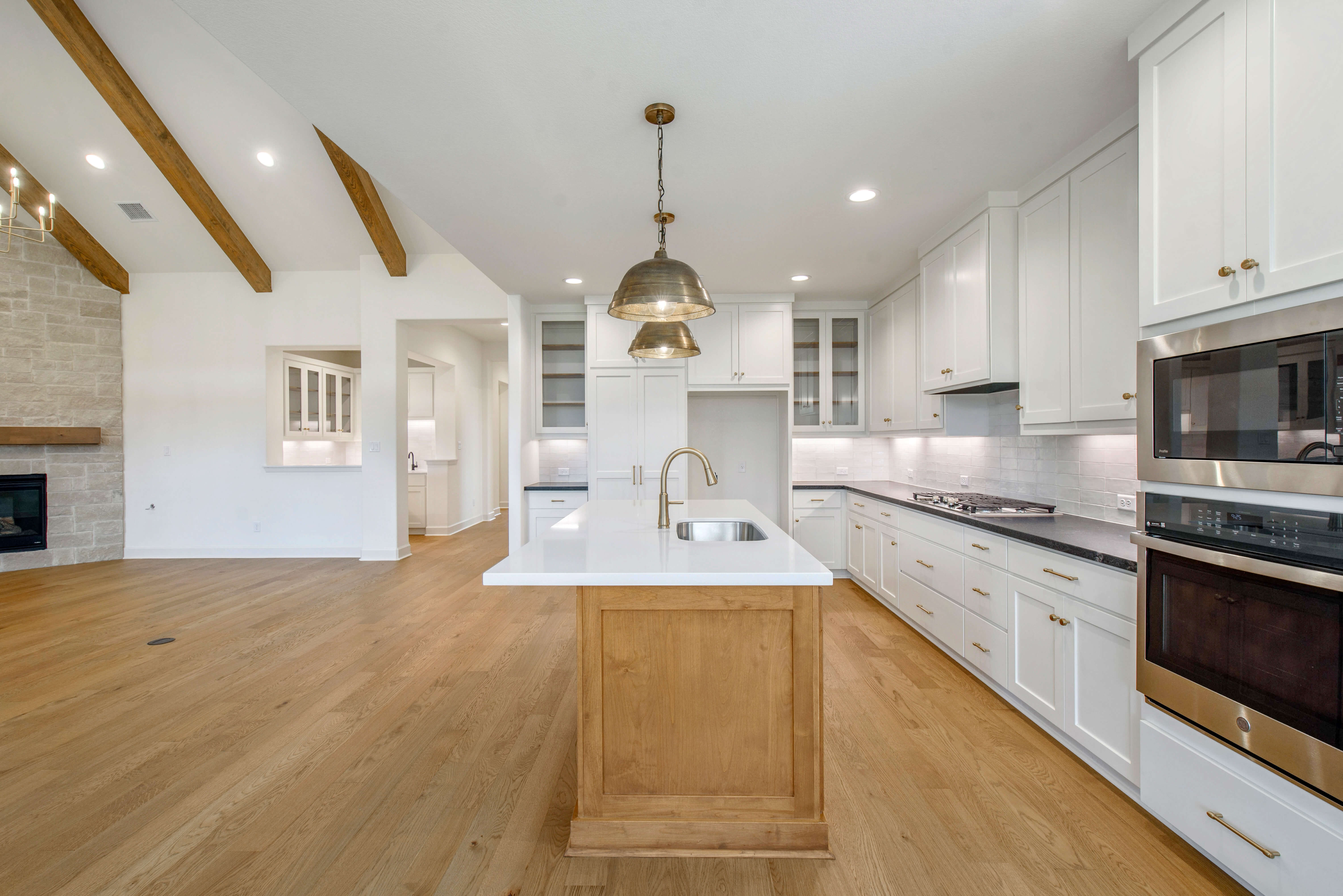 The heart of the home is in The Taylor’s family room, where family fun seamlessly transitions to the covered patio, nestled between the owner’s suite and dining area. Enjoy the perfect entertaining space with a wet bar that overlooks your family room, featuring a built-in wine cooler and extra sink. The kitchen is generously sized, with a hidden butler’s pantry that maximizes your storage needs.